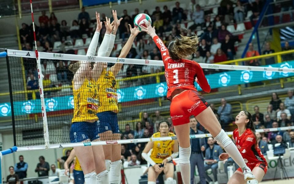 3月5日凌晨,女排意甲季后赛1/4决赛第2场比赛展开争夺。科内利亚诺队赴客场挑战布斯托阿西齐奥。本场比赛科内利亚诺直落3局3-0赢下胜利,在3场2胜的系列赛当中2-0胜出,成功锁定了一个四强席位。